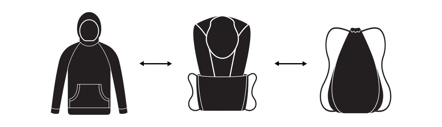 • Kuscheliger Zip-Hoodie, der sich innerhalb von Sekunden zum Turnbeutel verwandeln lässt